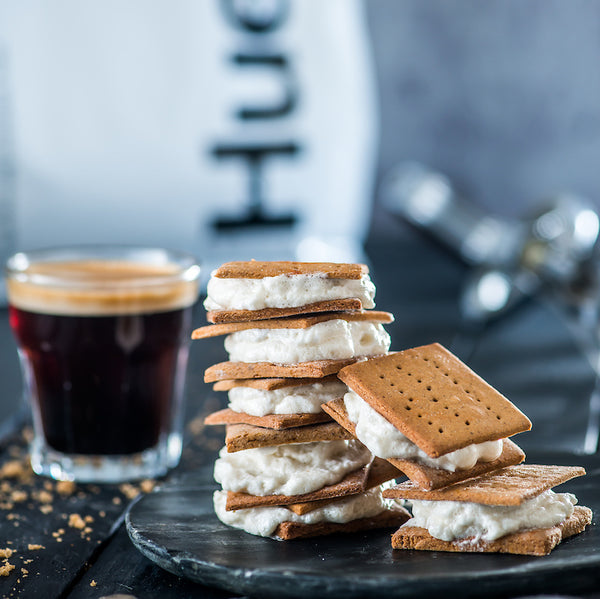 • For the Graham Crackers, preheat the oven to 160C and combine the Huel, brown rice flour, cornstarch, dark brown sugar, baking powder and salt in a bowl.
